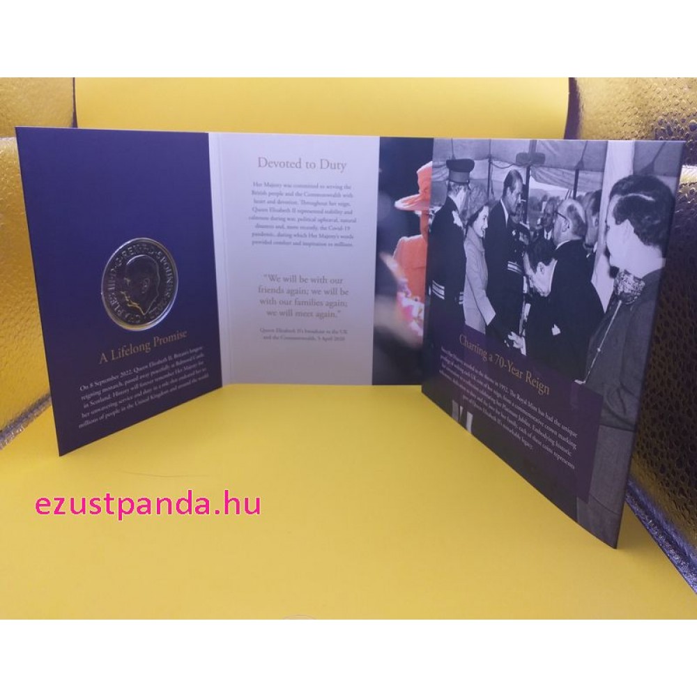 II. Erzsébet királynő emlékére 2022 brit 5 font réz-nikkel pénzérme díszcsomagolásban - KÁROLY-FEJES! M-GB-QEM5GBPCuNi22