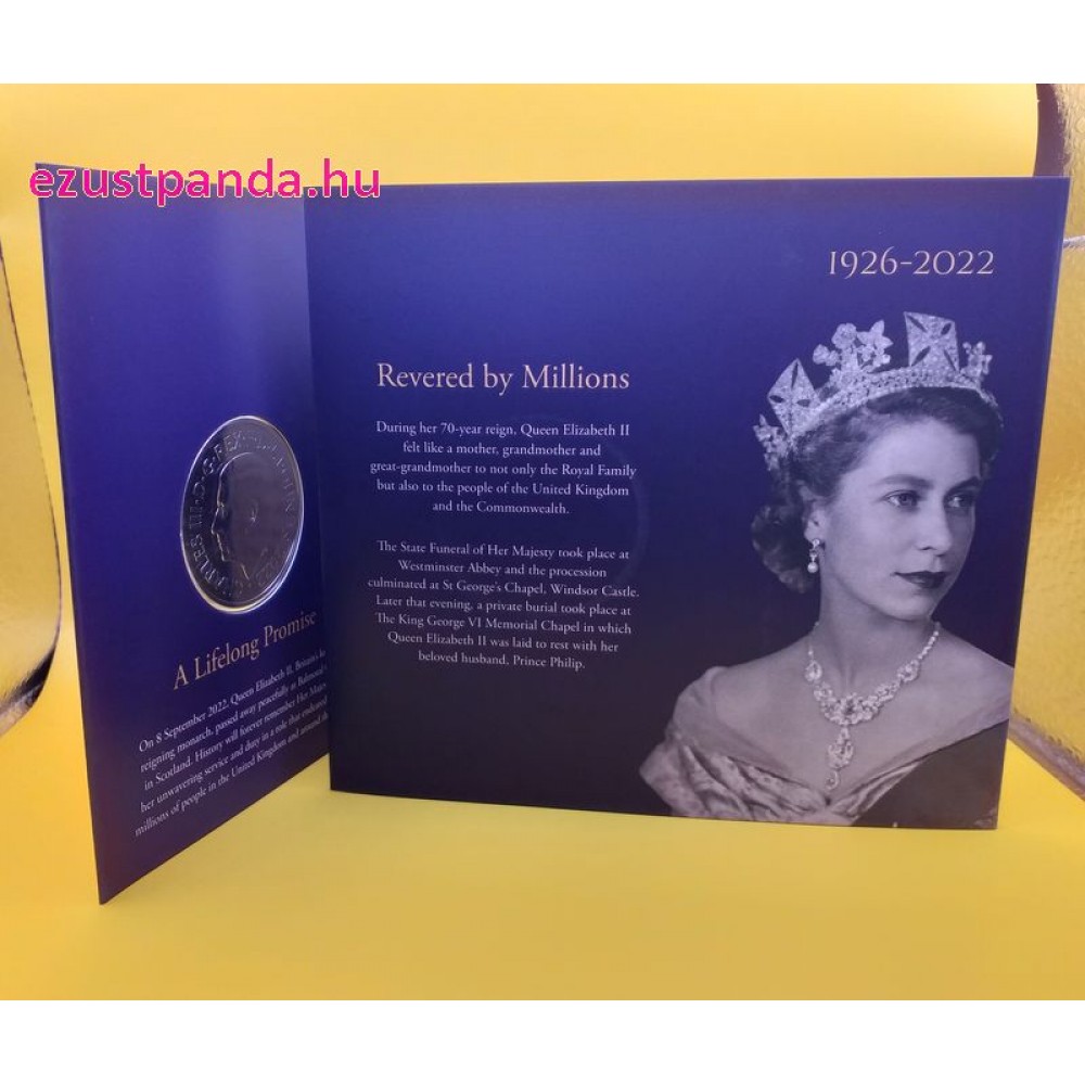 II. Erzsébet királynő emlékére 2022 brit 5 GBP proof ezüst pénzérme díszdobozban - KÁROLY-FEJES! S-GB-QEM5GBP22PP