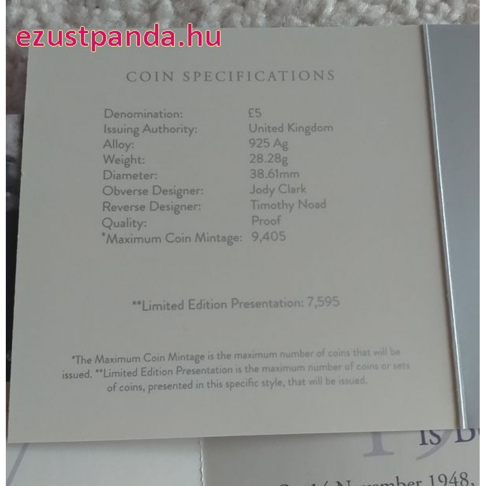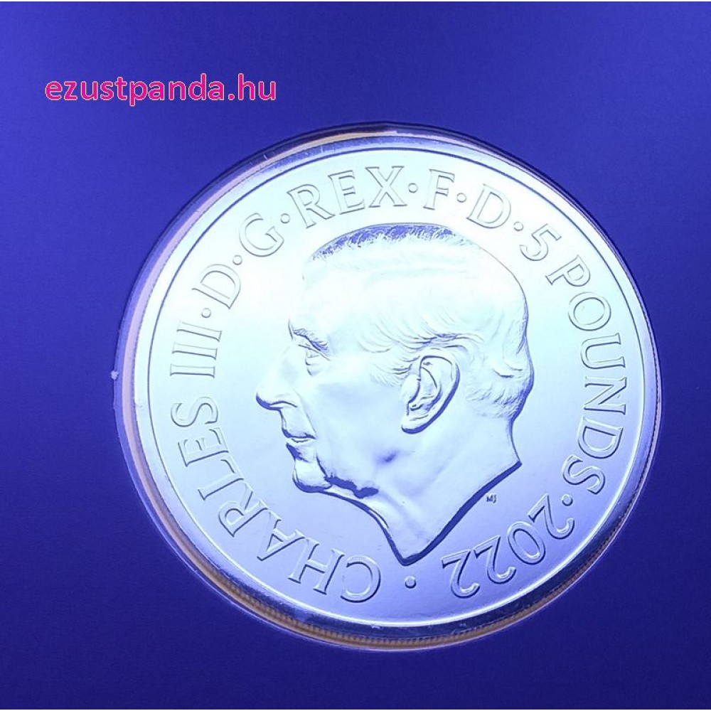 II. Erzsébet királynő emlékére 2022 brit 5 GBP 56g PIEDFORT proof ezüst pénzérme díszdobozban - KÁROLY-FEJES! S-GB-QEM5GBP22PIED