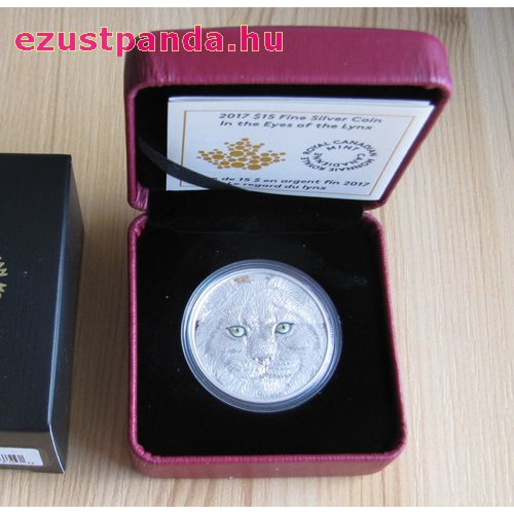 Hiúz proof ezüst pénzérme - világító tűzzománc szemekkel S-CA-EyLynx17PP