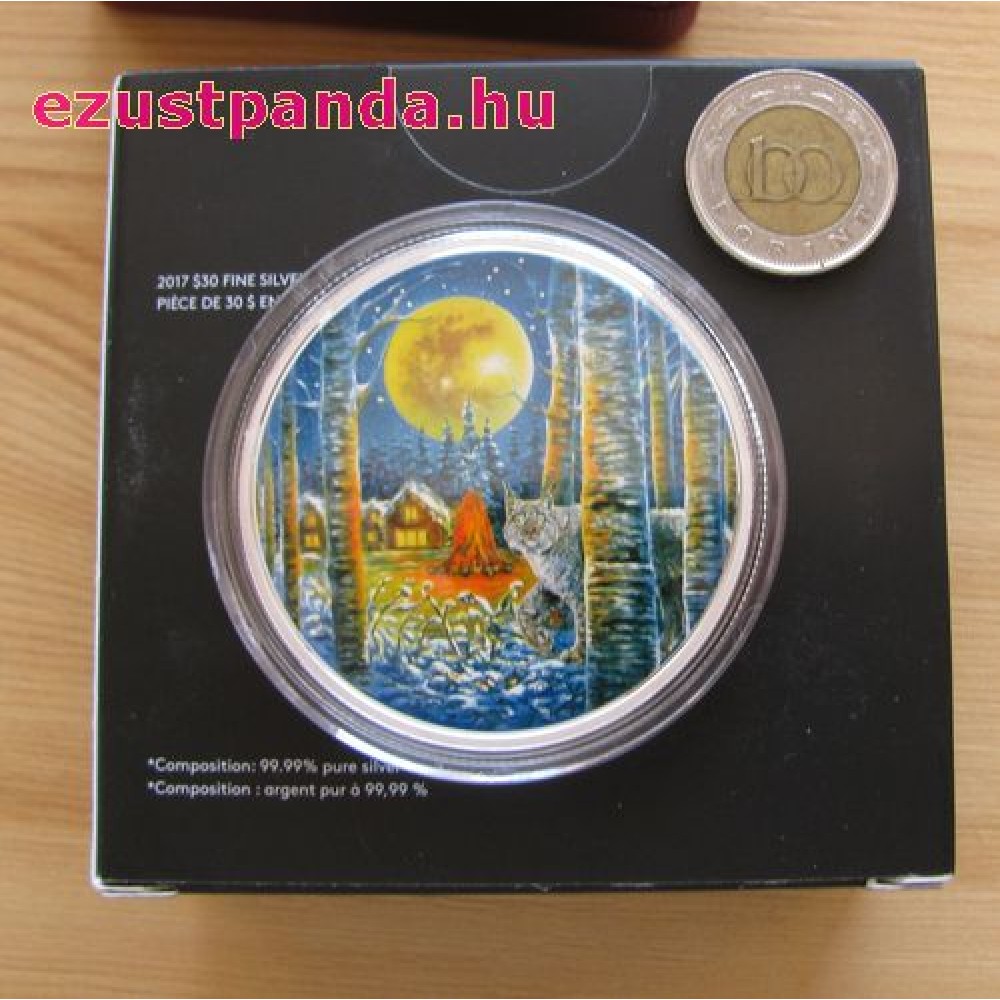 Hiúz a holdfényben 2 uncia kanadai proof ezüst pénzérme, sötétben világít S-CA-MLLynx17