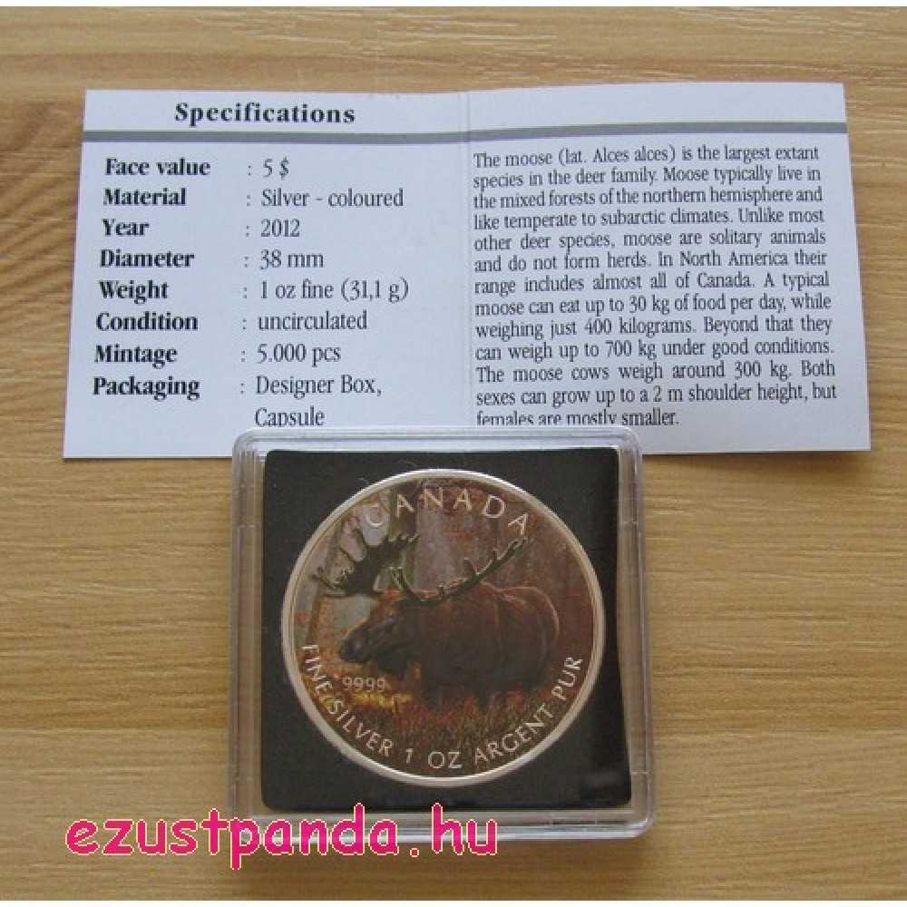 Jávorszarvas / Moose 2012 1 uncia színes ezüst pénzérme S-CA-Moose12COL