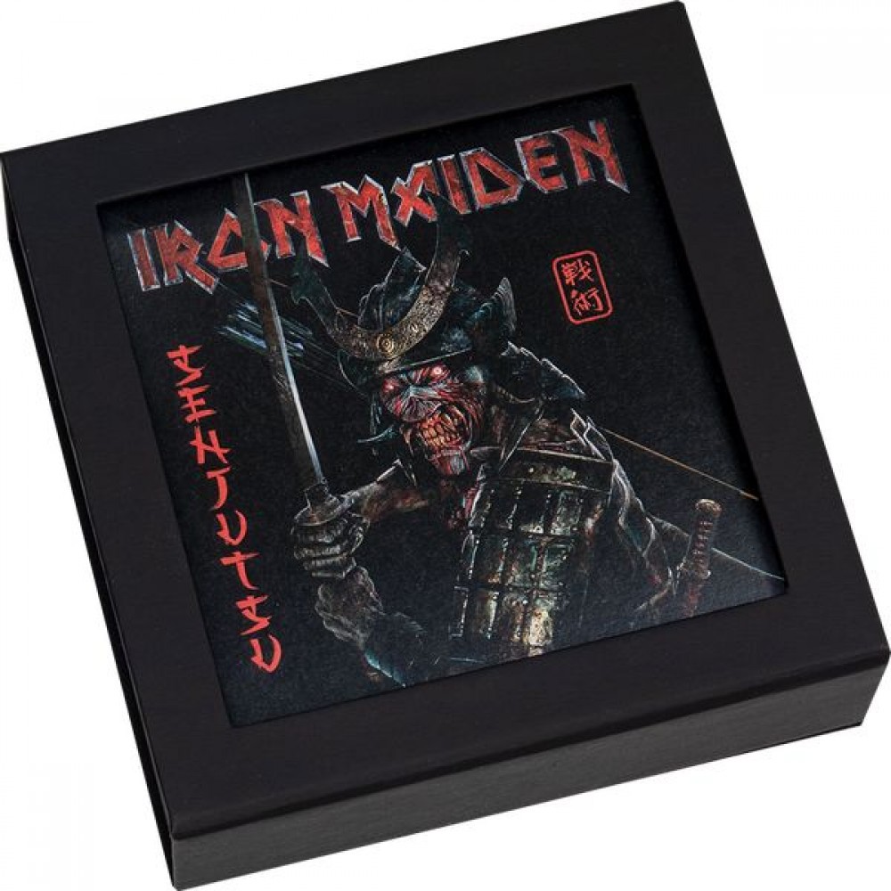 Iron Maiden Senjutsu 2022 2 uncia Cook-szk obszidián-fekete ezüst pénzérme - CSAK 999 példányban! S-CK-IronMSenj22