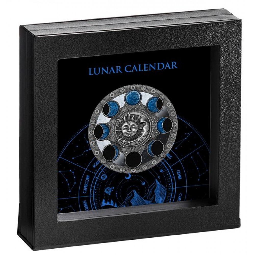 Holdnaptár 2024 2 uncia antikolt ezüst pénzérme - 600 PÉLDÁNYBAN! S-NU-CalLun24
