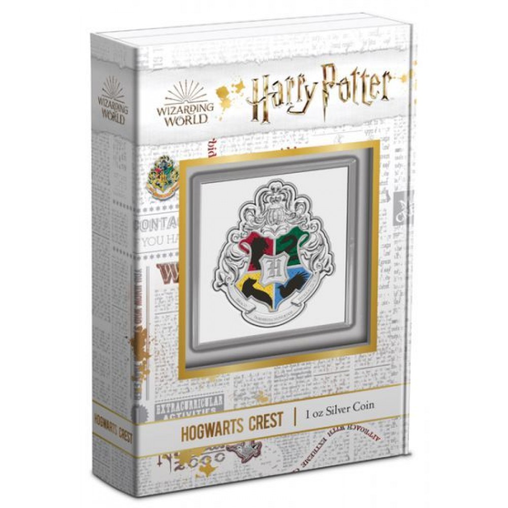 Harry Potter - Roxfort iskola címere 1 uncia színezüst pénzérme Niue-sziget 2021 S-NU-HPCrest21