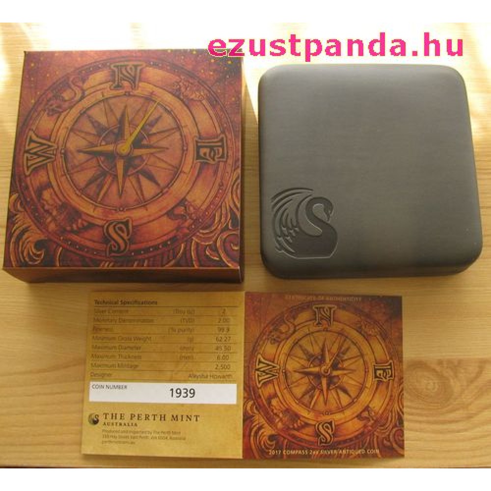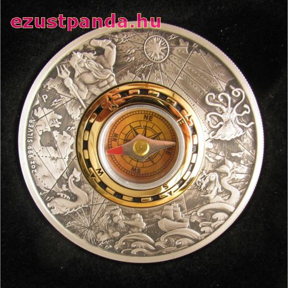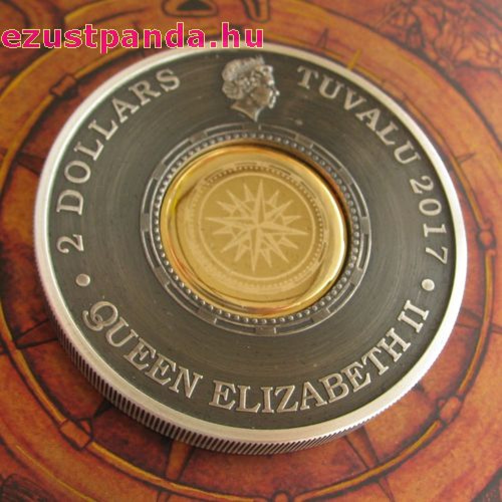 Iránytű - Tuvalu 2017 2 uncia antikolt ezüst pénzérme S-TV-Compass17