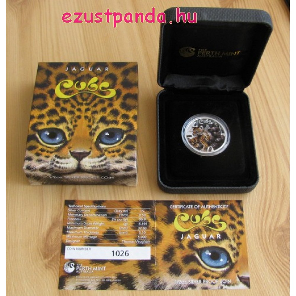 Jaguárkölykök 2016 1/2 uncia színes ezüst pénzérme S-TV-CubsJag16