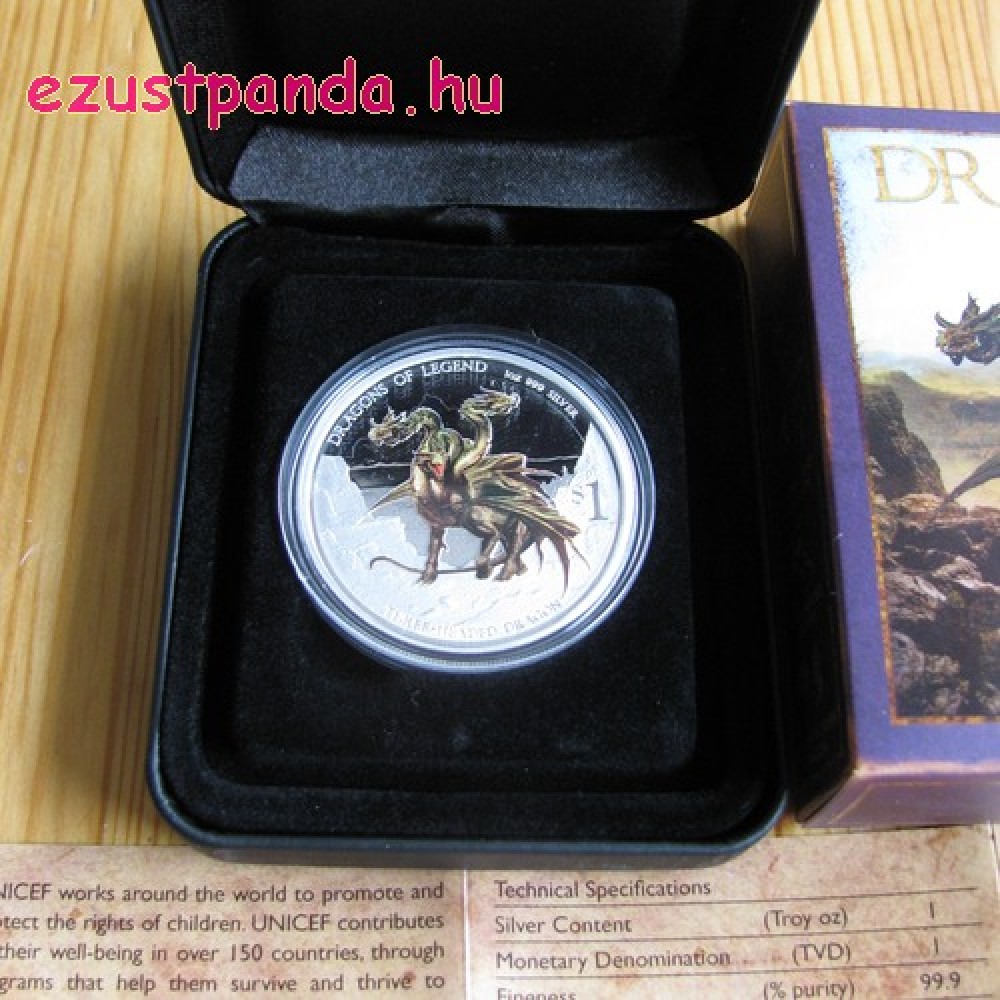 Háromfejű sárkány - 2013 1 uncia proof ezüst pénzérme S-TV-DLThree-H13